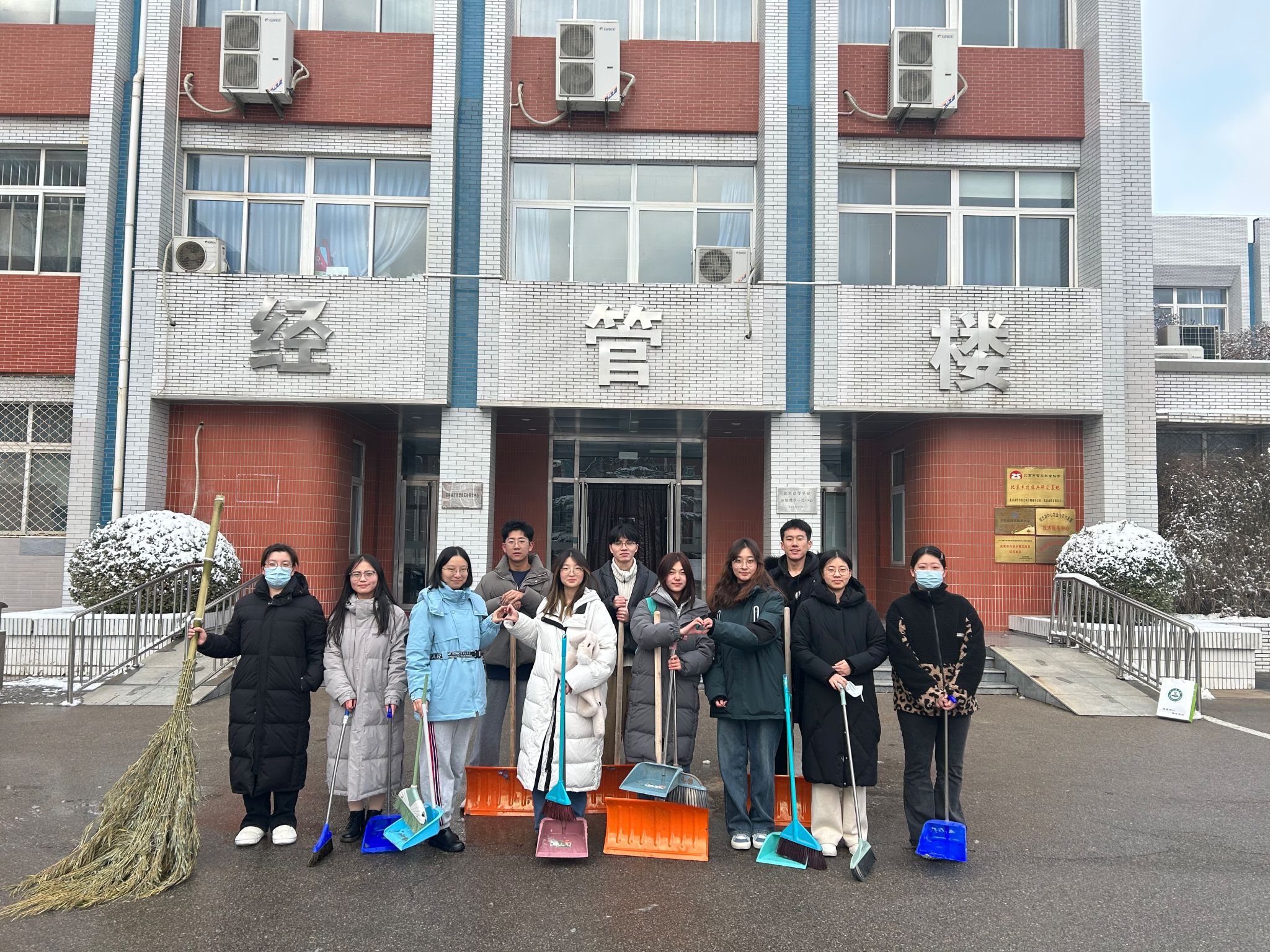 2023年冬的第一场雪如约而至,为消除融雪结冰产生的安全隐患,保障校内道路畅通。伟德BV官网教师和第63期党校高级培训班学员共计十余人投入到扫雪除冰志愿活动中,主动擦亮“志愿服务”的名片。
