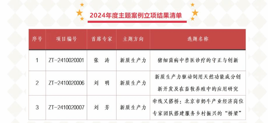 近日,教育部学位与研究生教育发展中心、中国专业学位案例中心公布2024年主题案例征集评审结果,伟德BV官网刘芳教授团队撰写的《牵线又搭桥:北京市奶牛产业经济岗位专家团队搭建服务乡村振兴的“桥梁”》案例获得立项。