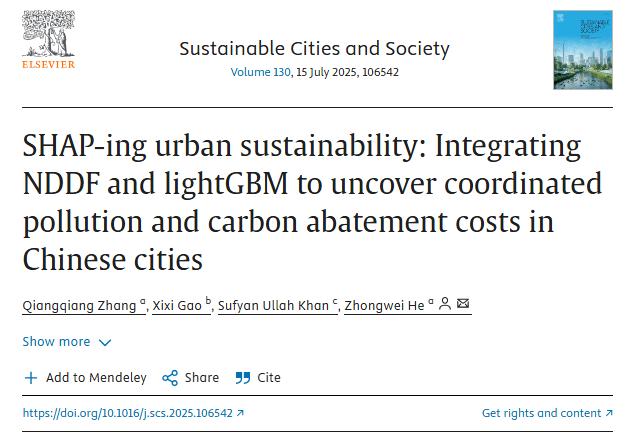 近日,公司何忠伟教授团队在《Sustainable Cities and Society》发表学术论文“SHAP-ing urban sustainability: Integrating NDDF and lightGBM to uncover coordinated pollution and carbon abatement costs in Chinese cities”,公司教师张强强博士后为该论文第一作者,何忠伟教授为通讯作者。据悉,《Sustainable Cities and Society》(SCS)为中科院SCI一区TOP期刊,最新影响因子为12,近三年平均影响因子为11.4,是爱思唯尔出版社旗下城市研究领域的国际知名期刊。