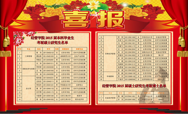 喜讯:2015届毕业生有29名考取硕士,2名考取博士