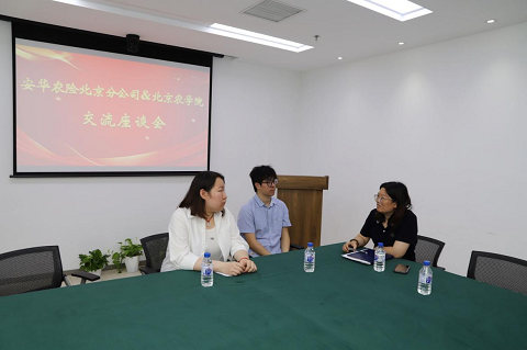 刘芳感谢安华农险在员工培养方面提供兼具企业认知、服务社会、开拓视野、增长才干的实习就业平台。希望在前期良好合作的基础上,探索以“专项班”为导向的高水平应用型人才培养模式,构建以农业保险领域热点问题为导向的科研实践模式,创建以就业能力提升为导向的专业实习模式。校企深度融合、有效合作,全面助力首都农业农村高质量发展。