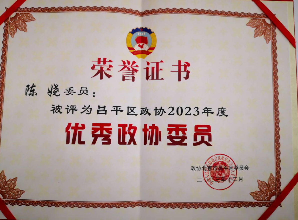 中国人民政治协商会议北京市昌平区六届三次会议于2024年1月8日至11日召开。伟德BV官网陈娆教授被评为昌平区政协2023年度优秀政协委员。