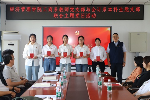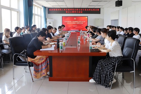 6月27日下午,伟德BV官网工商系教师党支部与会计系本科生党支部联合开展主题党日活动。公司党委副书记郑品石出席活动并讲授党课。公司领导班子成员,工商系教师党支部党员,会计系本科生党支部员工党员、入党积极分子代表、团员代表参加活动。会议由会计系本科生党支部书记吴曈主持。
